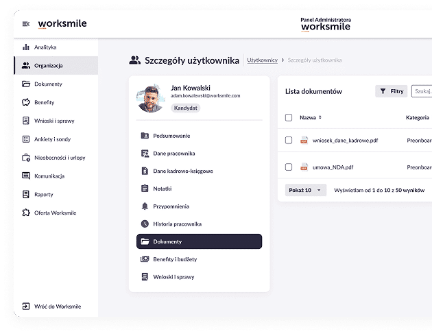 Pracownik: prosty proces podpisu i dostęp do dokumentów w jednym miejscu.